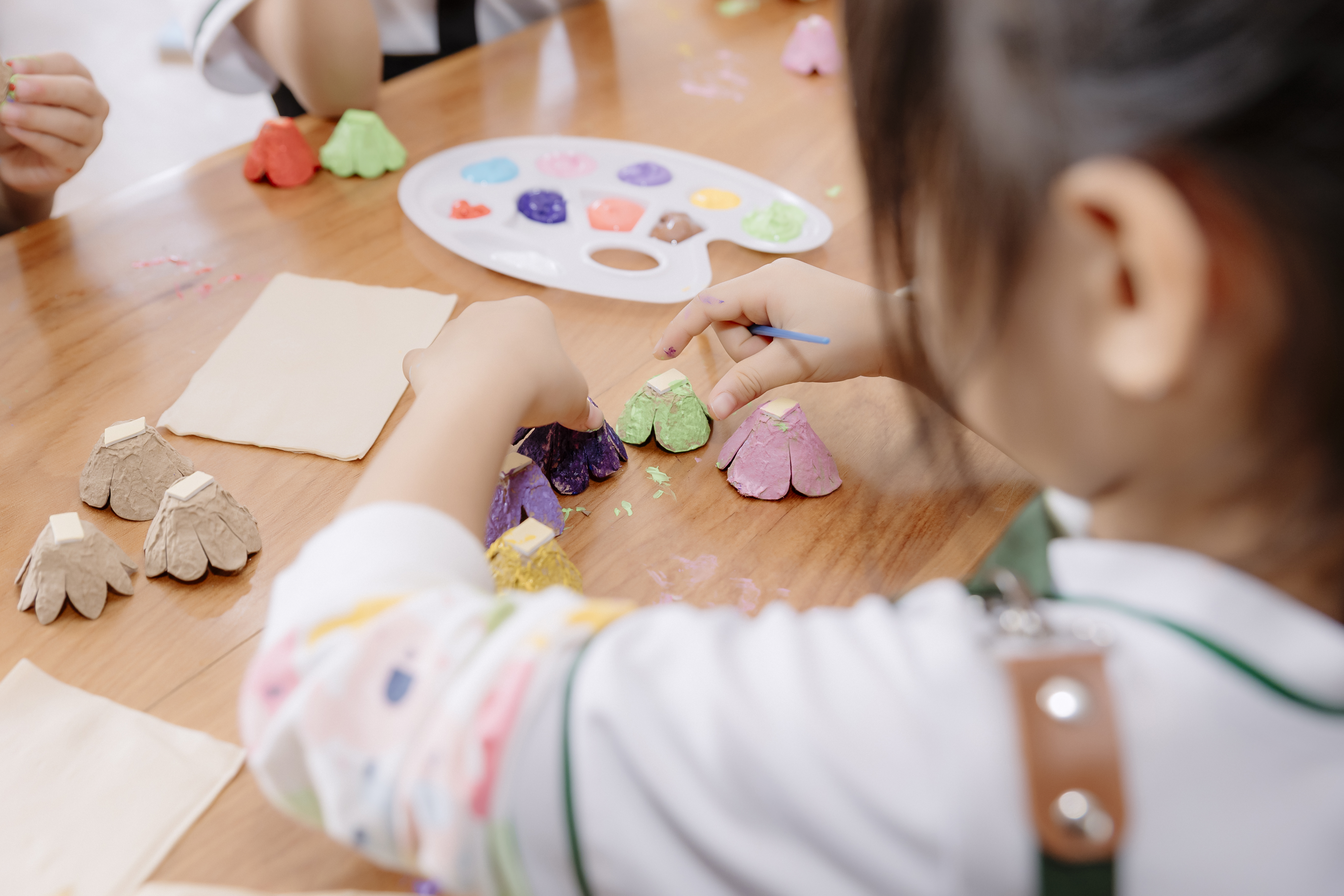 Chúng tôi chuẩn hóa quy trình an toàn (vệ sinh, kiểm tra vật liệu) và hướng dẫn trẻ sử dụng dụng cụ đúng cách. Không gian học tập được bố trí trực quan, cùng tỉ lệ hướng dẫn viên và học viên phù hợp giúp trẻ thực hành an toàn và tập trung.